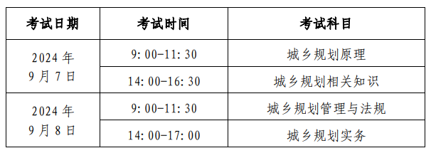 北京2024年度注册城乡规划师职业资格考试定于9月7日、8日举行。具体考试时间、考试科目详情请参考下文。
