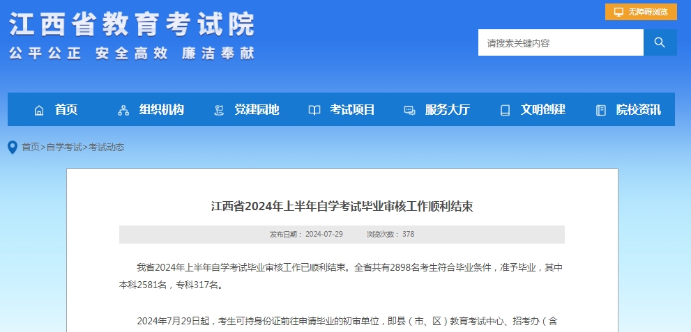 我省2024年上半年自学考试毕业审核工作已顺利结束。全省共有2898名考生符合毕业条件,准予毕业,其中本科2581名,专科317名。