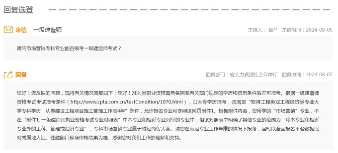 以上是“安徽省人社厅回复:市场营销专科报考一级建造师问题”相关内容,希望能帮到大家。