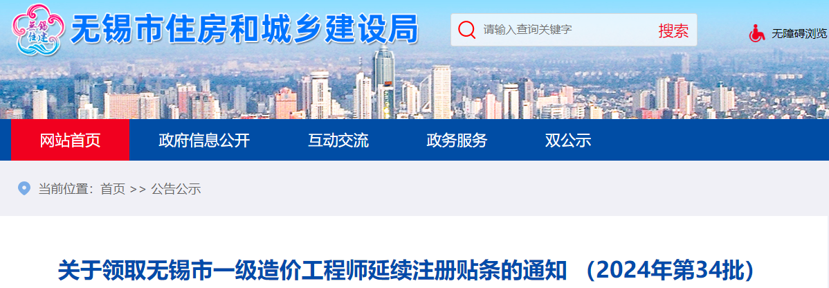 2024年8月29日,无锡市住房和城乡建设局发布了《关于领取无锡市一级造价工程师延续注册贴条的通知