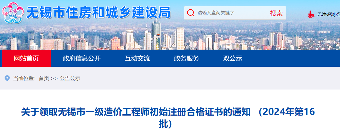 2024年9月4日,无锡市住房和城乡建设局发布了《关于领取无锡市一级造价工程师初始注册合格证书的通知(2024年第16批)》,其中明确无锡一级造价师证书初始注册已办结,相关人员需进行领证。