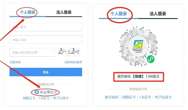 点击【个人登录】-【粤省事登录】。打开手机微信点击右上角的✚,选择“扫一扫”,扫您网页上的“粤省事”二维码,登录到广东政府服务网(务必选择个人登录)。