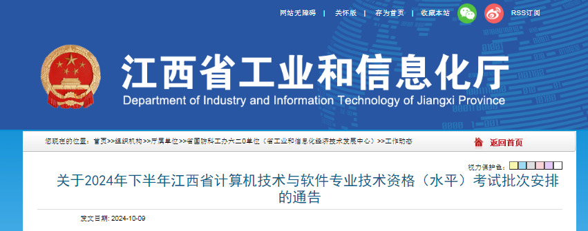 关于2024年下半年江西省计算机技术与软件专业技术资格(水平)考试批次安排的通告