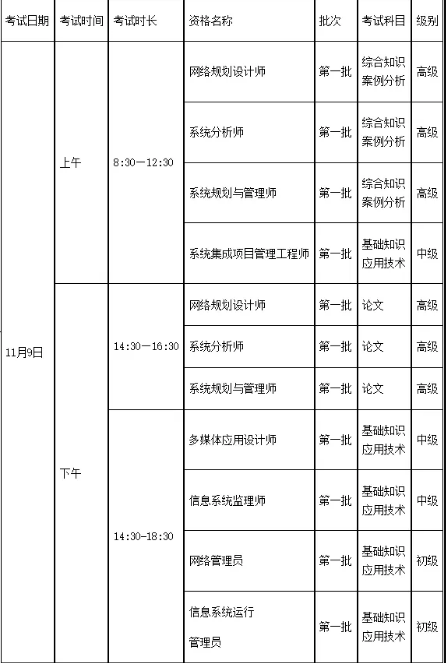 10月9日,江西省工业和信息化厅发布了《关于2024年下半年江西省计算机技术与软件专业技术资格(水平)考试批次安排的通告》,由通知可知,江西2024年下半年软考只考两天,考试时间安排在11月9日-10日,各科目考试时间及批次安排详见下文。