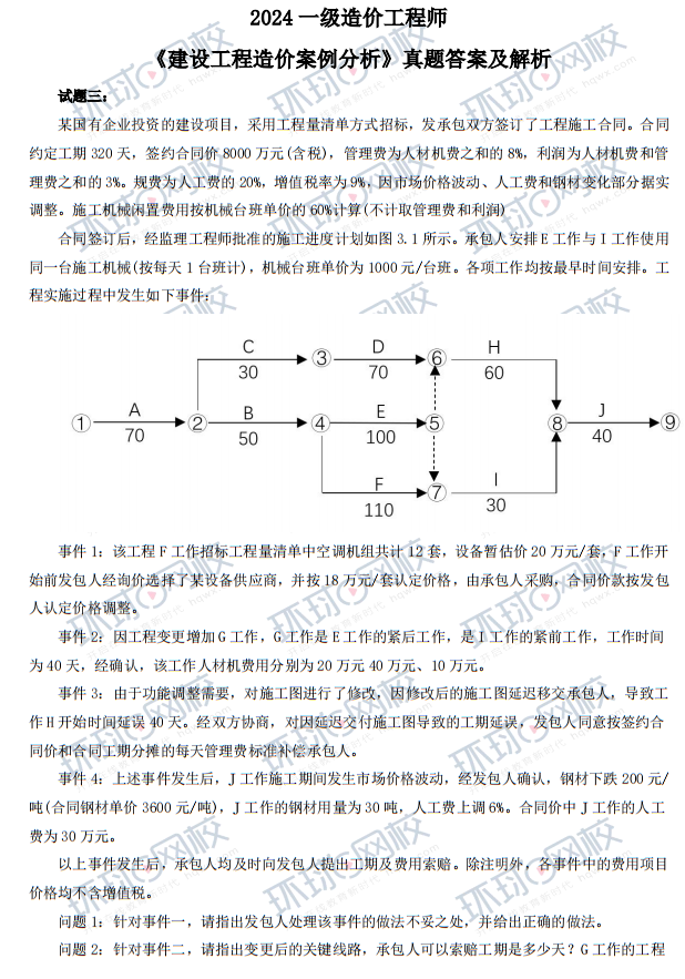 2024年度一级造价工程师考试已经顺利结束,考生们此刻或许正急切地想要回顾自己的答题表现。为此,我们特别提供了《建设工程造价案例分析》科目的考试真题及答案解析,帮助考生们根据记忆核对答案,并参照评分标准自我评估分数。同时,这份资料也为未参加考试的考生提供了宝贵的备考学习材料。