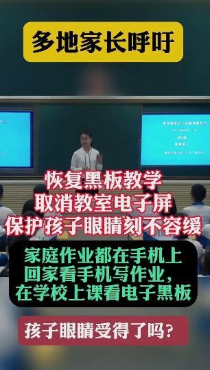 2023年以来,多地家长通过留言板、社交媒体呼吁取消电子屏。西安一位家长称:“开一小时家长会后眼睛刺痛,更别提孩子每天6小时盯屏”。但校方认为,电子屏是教育数字化转型的关键工具,西安市未央区教育局明确回应:禁止“一刀切”取消,要求单节课使用不超过10分钟,并保证每日户外活动时间。