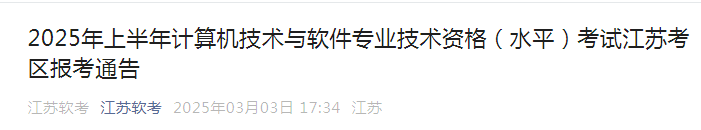 2025年上半年计算机技术与软件专业技术资格(水平)考试江苏考区报考通告