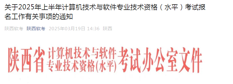 陕西软考办发布了《关于2025年上半年计算机技术与软件专业技术资格(水平)考试陕西考区报名工作安排有关事项的通知》,根据通知可知,陕西2025年上半年计算机软考报名时间为4月1日9:00~4月15日16:00,具体报名相关事项如下文所示。