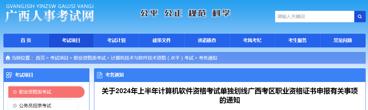 关于2024年上半年计算机软件资格考试单独划线广西考区职业资格证书申报有关事项的通知