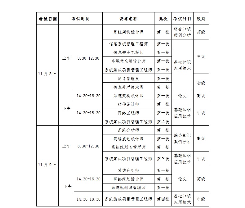 按照工业和信息化部教育与考试中心《关于2025年下半年计算机软件资格考试批次安排的通知》(工信教〔2025〕37号)文件精神,2025年下半年计算机软件资格考试云南考区考试批次安排如下: