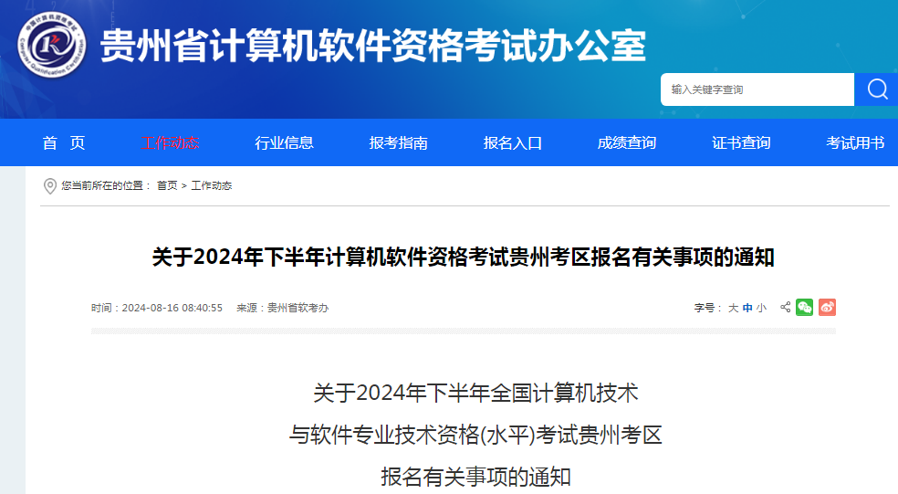 ?根据人力资源和社会保障部《关于2024年度专业技术人员职业资格考试计划及有关事项的通知》(人社厅发〔2024〕1号)精神及工信部教育与考试中心相关要求,结合我省实际,现将2024年下半年计算机技术与软件专业技术资格(水平)考试(以下称计算机软件资格考试)报名有关事项通知如下: