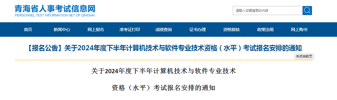青海人事考试信息网发布了《关于2024年度下半年计算机技术与软件专业技术资格(水平)考试报名安排的通知》,由通知可知,青海2024下半年软考中项考试报名时间为8月23日9时-9月2日18时,请考生在规定时间内进行报名。