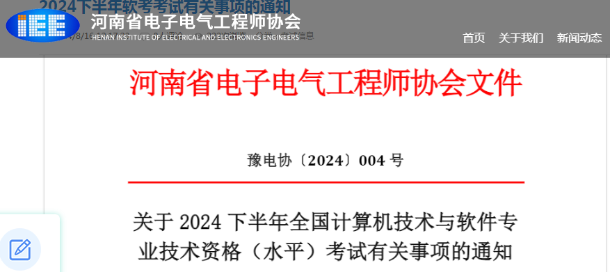 根据全国计算机软件考试办公室《关于印发2024年度计算机技术与软件专业技术资格(水平)考试工作安排的通知》(计考办〔2024)1号)安排,现将河南省2024下半年全国计算机技术与软件专业技术资格(水平)考试工作的有关事项通知如下: