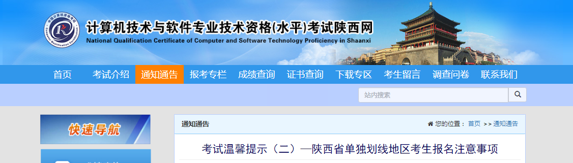 陕西软考办发布了《考试温馨提示(二)—陕西省单独划线地区考生报名注意事项》,陕西省单独划线地区报考人员请认真阅读以下通知,按照相关要求报考2024下半年软考考试。