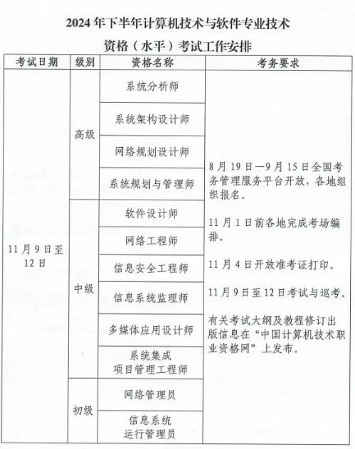 2024年下半年计算机软件资格考试设置初、中、高三个级别。