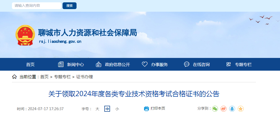 关于领取2024年度各类专业技术资格考试合格证书的公告
