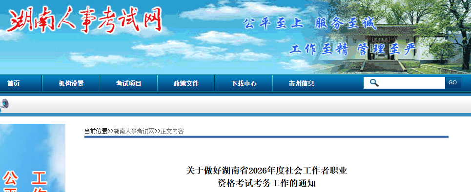 首页 > 社会工作者 > 报名时间 > 湖南人事考试网发布:2026年湖南社会工作者报名时间为3月19日-29日