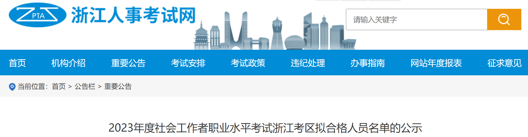 《2023年度社会工作者职业水平考试浙江考区拟合格人员名单的公示》正文如下: