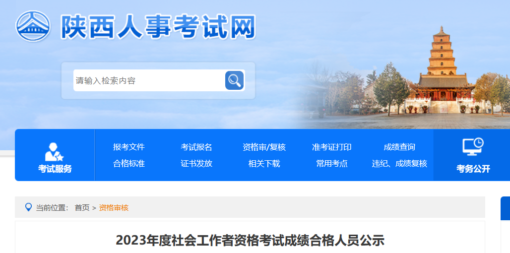 陕西《2023年度社会工作者资格考试成绩合格人员公示》正文如下: