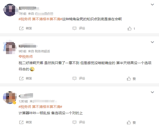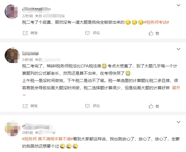 2023年税务师《税法二》考试已于11月18日下午15:30结束,很多小伙伴反馈下午场税法二好难,一个都不会做。到底有多难呢,让考试结束的人员如此吐槽。