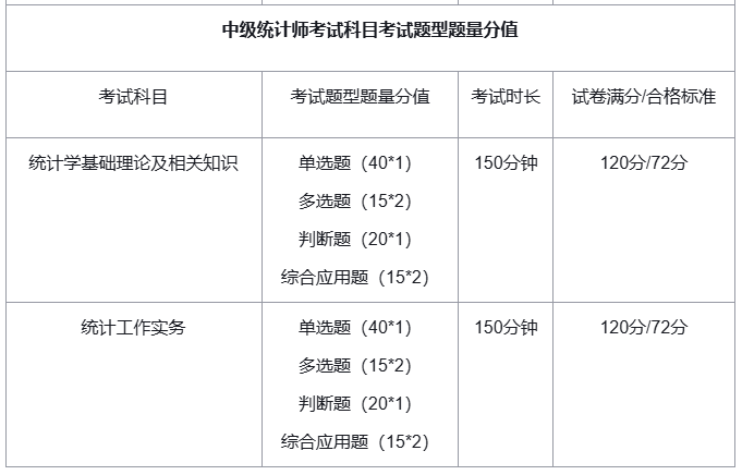 统计专业中级资格考试科目为《统计基础理论及相关知识》和《统计工作实务》,参加统计专业中级资格考试的人员,必须在1个考试年度内通过全部科目,方可获得统计专业技术中级资格证书。