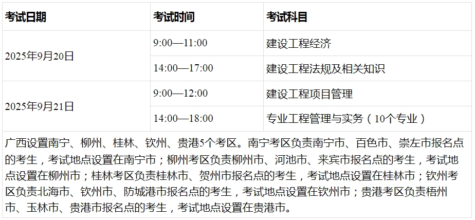 根据《人力资源和社会保障部人事考试中心关于2025年度一级建造师职业资格考试考务工作的通知》(人考中心函〔2025〕20号)精神,为做好2025年度一级建造师职业资格考试广西考区考务工作,现将有关事项通知如下: