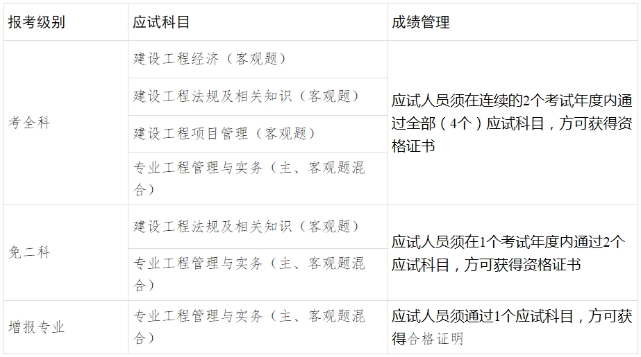 1. 取得工程类或工程经济类专业大学专科学历,从事建设工程项目施工管理工作满4年。