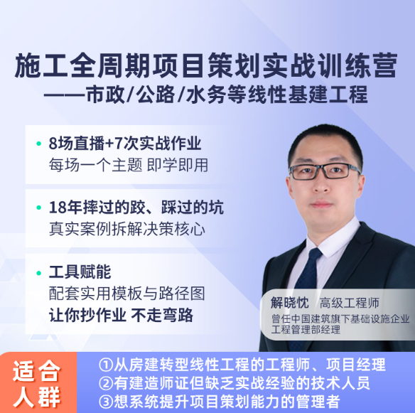 为了帮助持证工程师完成从“会干活”到“懂管理”的进阶,近期有一门专为一建持证人群定制的实战课程——《项目全周期策划实战闭门课》,正在受到关注。