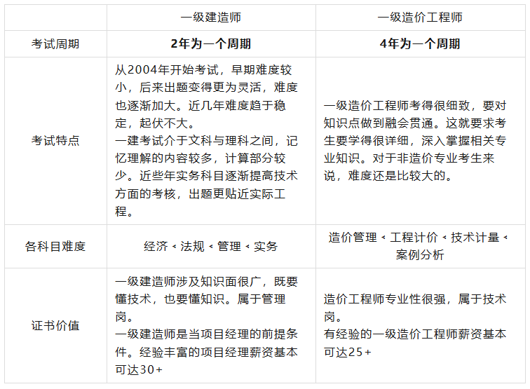在建筑行业里,一级建造师和造价工程师历来都属热门证书。一级建造师的含金量无庸赘述,造价工程师近期虽然取消了资质要求,但是如果你想从事这个行业,还是需要有证书的,全员持证或将成为行业新趋势。