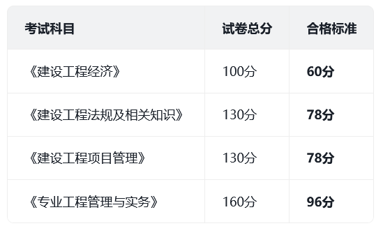 吉林省一级建造师考试的合格标准与全国完全一致,各科目均按试卷满分的60%划定。具体分数线如下: