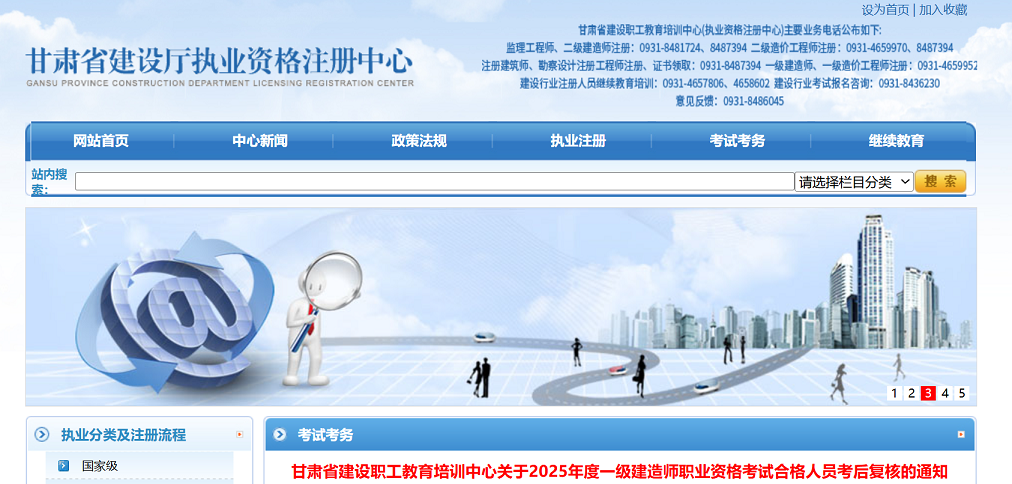 为有序开展我省2025年度一级建造师职业资格考试合格人员考后复核工作,根据人力资源和社会保障部人事考试中心《关于专业技术人员资格考试报名证明事项告知承诺制试点后续工作有关问题的通知》(人考中心函【2019】69号)和《关于做好甘肃省2025年度一级建造师职业资格考试报名工作的通知》(甘人社通【2025】168号)要求,由省人力资源考试中心提供随机抽取资格复核人员名单,由省建设职工教育培训中心具体实施复核。现将有关事项通知如下: