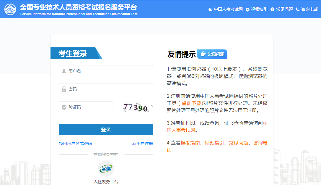 1.用户注册。注册信息务必准确填写本人姓名、身份证号、学历学位(保存后不能修改删除,只能增加,仅限填5条)。照片采用近期标准1寸白底彩色半身免冠正面证件照(尺寸25mm×35mm,像素295px×413px)。报考人员上传照片时,可使用网上报名流程中提供的照片审核工具审核通过后再上传,以确保格式正确。照片必须清晰并反映本人特征,照片不合格的,需重新上传。