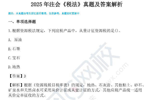 二、2025年注册会计师《税法》真题(8月23日下午场)