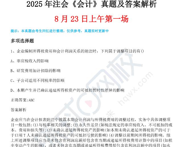 2025年注册会计师考试,在8月23日顺利开考,在考后我们根据网友回忆为大家进行了真题的收集和整理,并为大家总结了相关考点,供大家在考后更加准确的估分。相关内容由考生回忆进行整理,仅供参考,真题实时更新中。