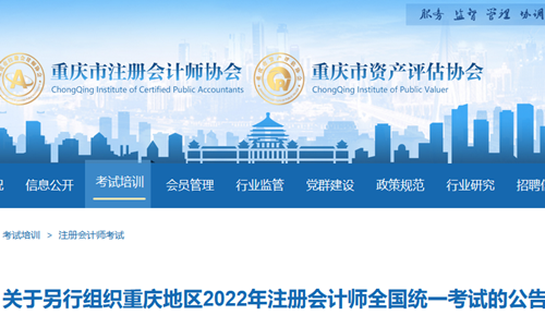 近日,重庆注册会计师协会发布了《关于另行组织重庆地区2022年注册会计师全国统一考试的公告》,通知中明确了2022年重庆注册会计师准考证打印时间是2022年9月19日至22日(每天8:00-20:00),通知中与准考证打印相关内容如下: