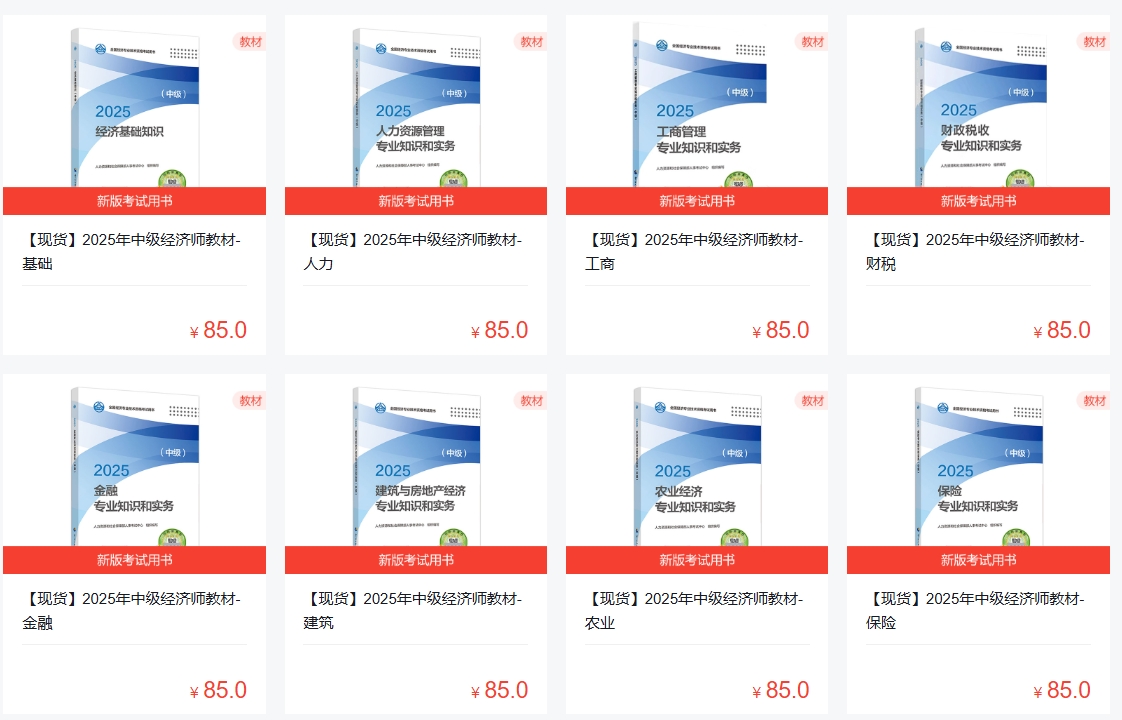 中国人事考试图书网是中级经济师教材发售的唯一官网。在这里购买教材,考生完全不用担心会买到盗版,因为作为官方平台,其信誉和服务质量都有保障。目前,该网站的中级经济师各科目教材均显示有货,并且还能享受95折的优惠。除了教材之外,考生还可以购买到其他配套资料,满足多样化的学习需求。其便捷的购物流程和高效的物流配送,能确保考生在第一时间收到教材,开启备考之旅。