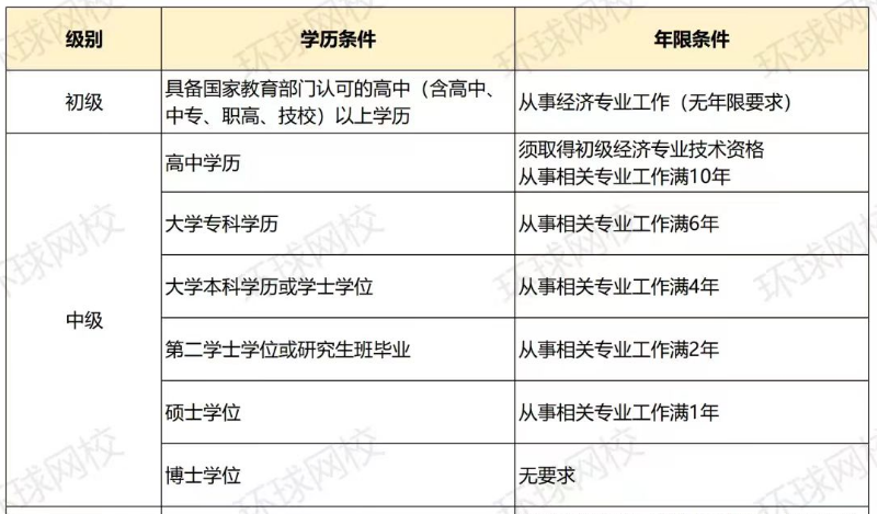一、2025年中级经济师报考学历要求