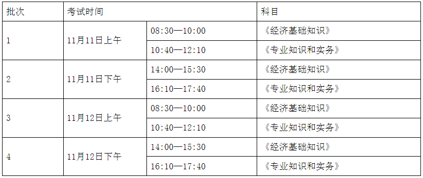 (三)初中级经济考试各科目考试时长为1.5小时,每科目考试开始5分钟后一律禁止应试人员进入考场,考试结束前15分钟应试人员可提前交卷。对于同时报考公共科目和专业科目的应试人员,两科目考试在同一批次内分2个场次连续组织,间隔时间为40分钟。