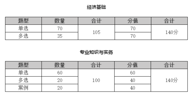 2023年中级经济师考试题型分值如下: