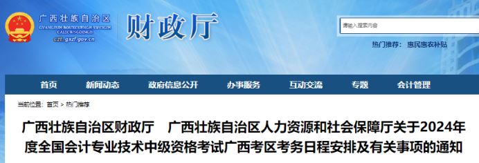 6.2024年10月31日前,“全国会计资格评价网”公布2024年度会计中级资格考试成绩。届时广西财会培训考试中心将在广西壮族自治区财政厅网站(http://czt.gxzf.gov.cn/)公布成绩查询通知、咨询电话和电子邮箱。