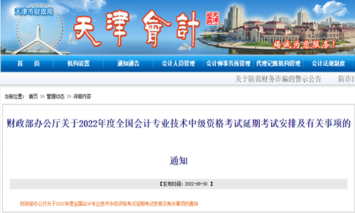 近日,天津会计网发布了《财政部办公厅关于2022年度全国会计专业技术中级资格考试延期考试安排及有关事项的通知》,通知里明确了延期地区考试时间为12月3日至4日,具体原文如下: