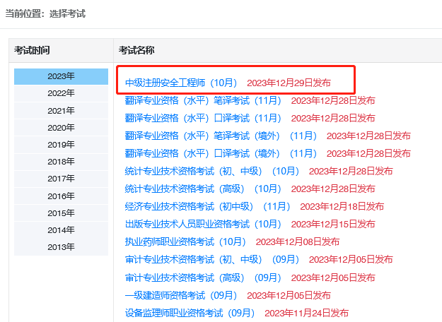 2023年中级注册安全工程师成绩于12月29日发布,考生进入“中国人事考试网 ”,点击左侧的“成绩查询”后输入相关信息即可进行查分,祝考生取得好成绩!建议点击文章顶部免费预约“考试小秘书”,届时会短信通知大家2023年中级注册安全工程师证书领取等重要信息!