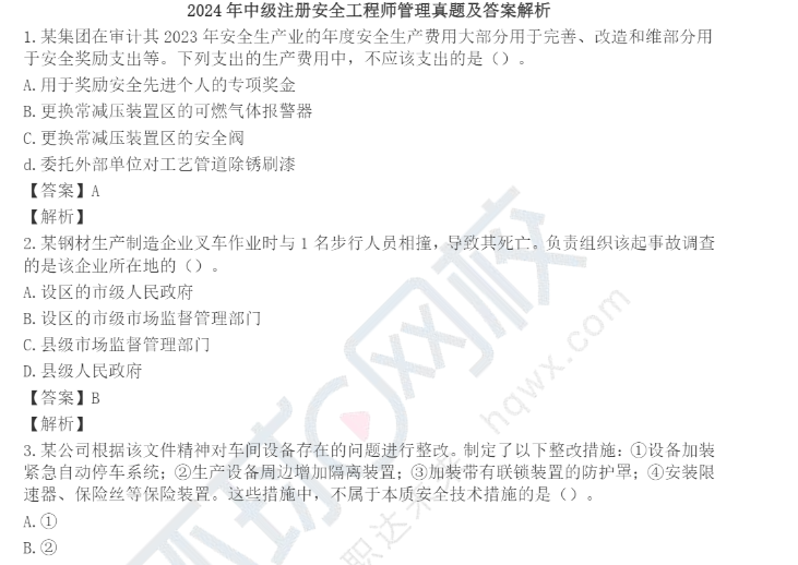考生可点击文末“立即下载/网盘链接”按钮免费获取2024年中级注册安全工程师真题及答案等精华内容!