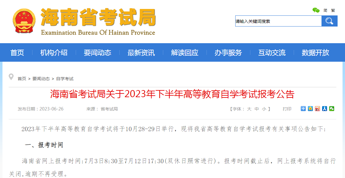6.考生在考试前五天自行登陆我局网站打印《海南省2023年下半年自考准考证和考试通知单》。