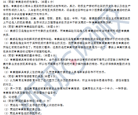 随着2024年10月自学考试《美学》科目的考试顺利结束,小编已经整理好了这次考试的真题和完整的答案分析,帮助考生们校对答案并预估自己的考试成绩。
