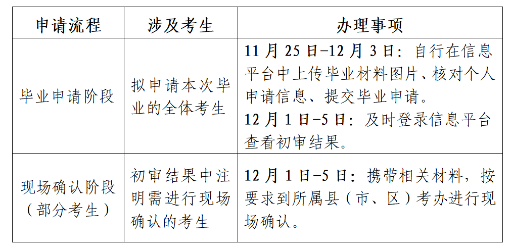 2.办理事项:《初审通知单》中注明需进行现场确认的考生,须在规定时间内,携带相关材料,到所属县(市、区)考办进行现场确认。