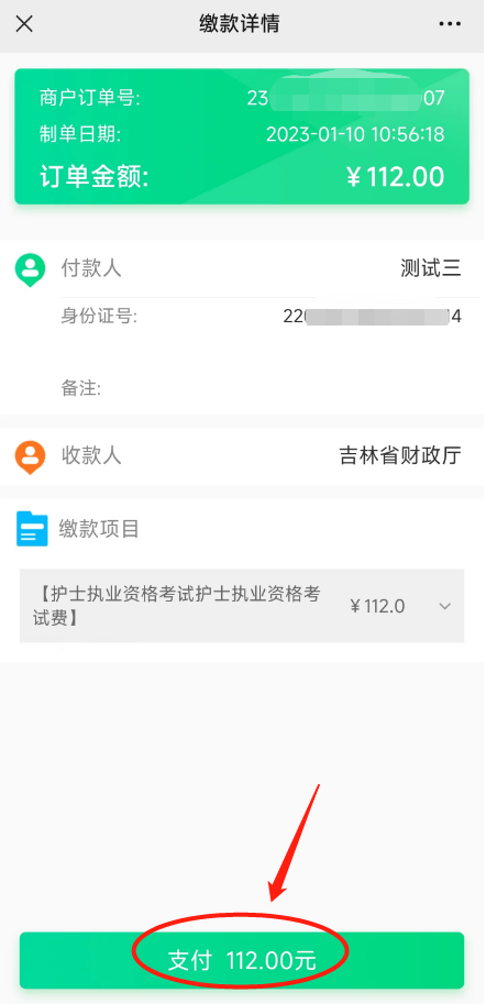 5.特别提醒:非长春考点考生请不要在此缴费。