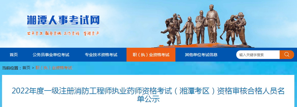 2022年度一级注册消防工程师执业药师资格考试(湘潭考区)资格审核合格人员名单公示