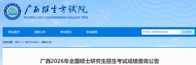 我区2026年全国硕士研究生招生考试成绩将于2月28日由招生单位向考生公布,考生可登录报考的招生单位官网了解具体成绩公布时间和查询方式。