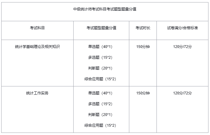 统计专业中级资格考试科目为《统计基础理论及相关知识》和《统计工作实务》,参加统计专业中级资格考试的人员,必须在1个考试年度内通过全部科目,方可获得统计专业技术中级资格证书。